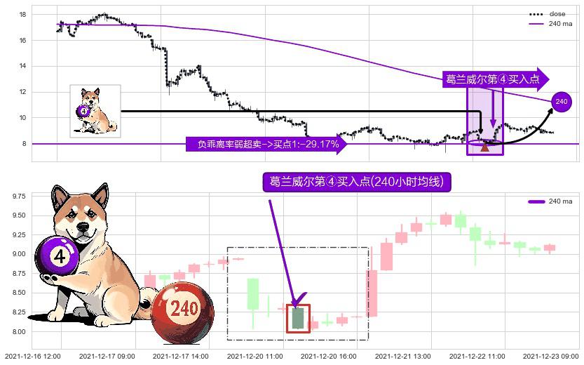 ⚀ 2021-12-20 12:00:00-小时显现 葛兰威尔均线 240小时均线 第④买入点 下降趋势均值回复的短线反弹信号,后市看涨,买进信号