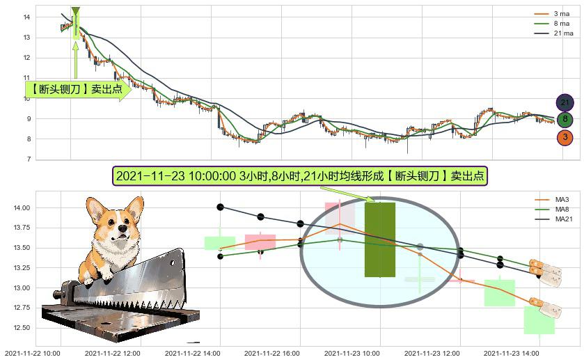 ⚀ 2021-11-23 10:00:00小时显现 3小时-8小时-21小时均线 【断头铡刀】卖出点 看空信号,后市看跌,卖出