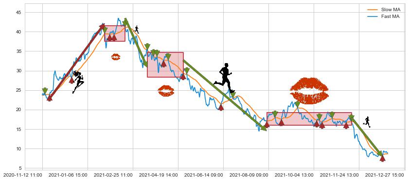 01-27 09:00至02-17 14:00 慢线与快线多次接触,存在上下穿越,有缠绕