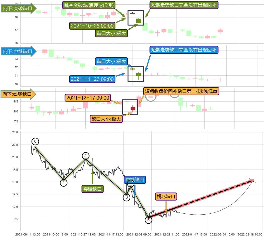 ➢ 2021-12-17 09:00形成:向下跳空【竭尽】缺口