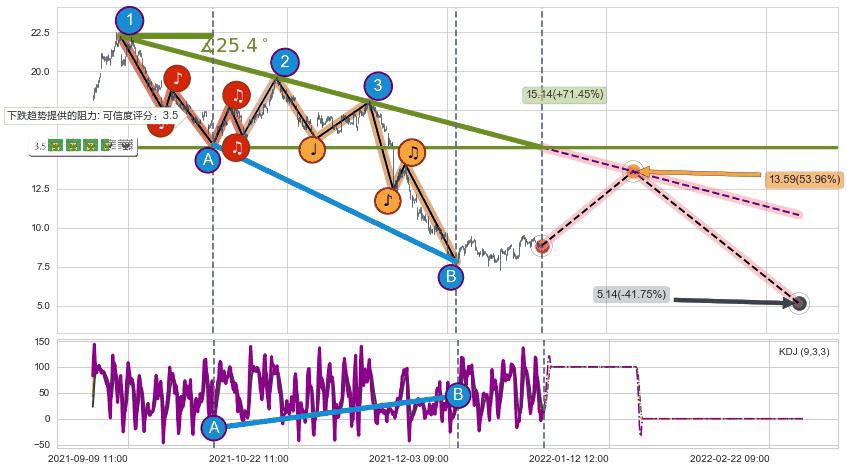 ♘ 阻力价格位15.72,可信任强度98.87%,距离最后交易2021-12-27 15:00形成的收盘价格8.83相差 +78.01%