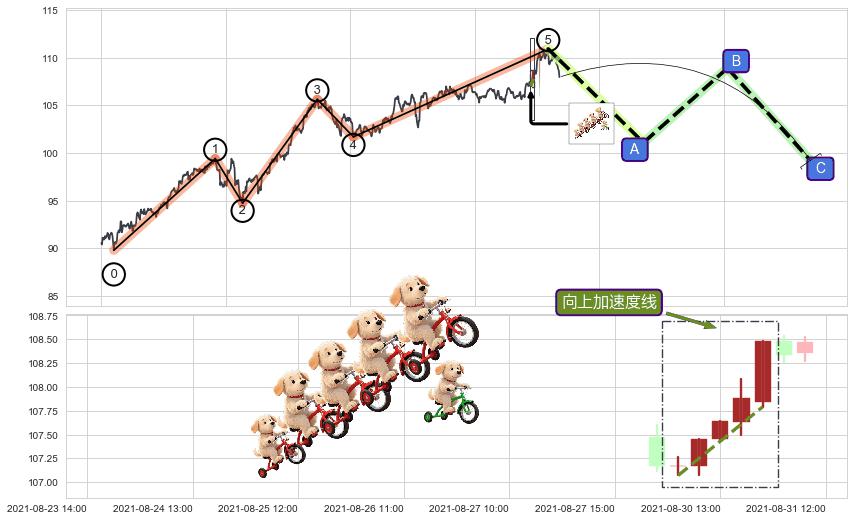 | 5 🅚:顶部尽头线(下山虎) ➕ 🌊:波浪理论猜想上涨浪5已形成,猜想后续形成回调abc下跌(均值回复) ☞ 看空信号 ⇥ 【🅚线】交织【图形】⇥ 综合量化分数: 41 | > |
