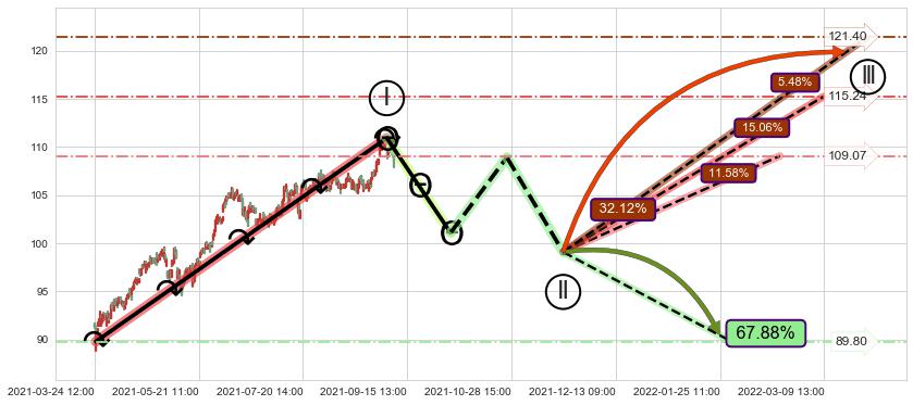 ➣ 循环浪继续向上【平均值】位置(03-09:12, 115.24),匹配聚类样本比例46.87%, 可能性概率15.06%