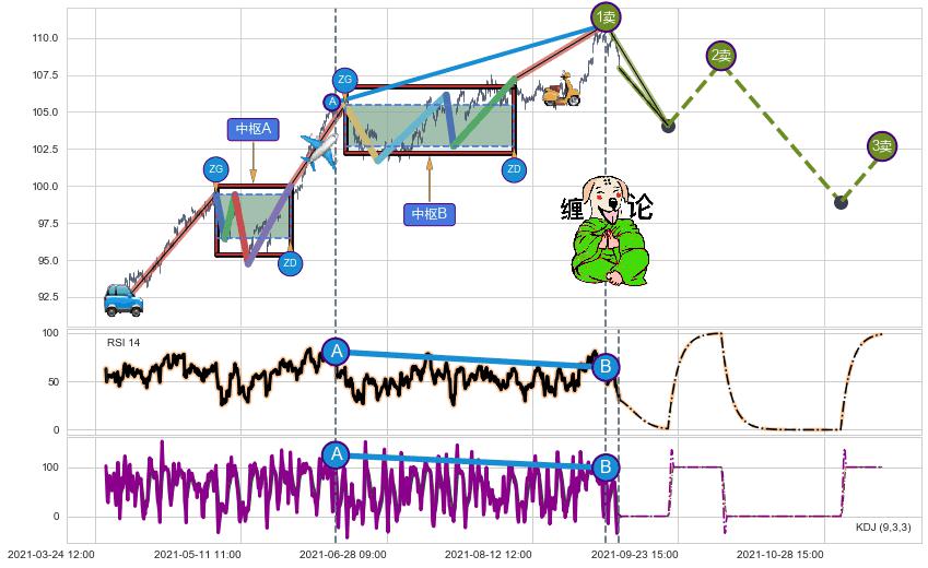 ➢ 缠论价格❶卖比A点高 ⤴,【KDJ】指标B点比A点低 ⤵️