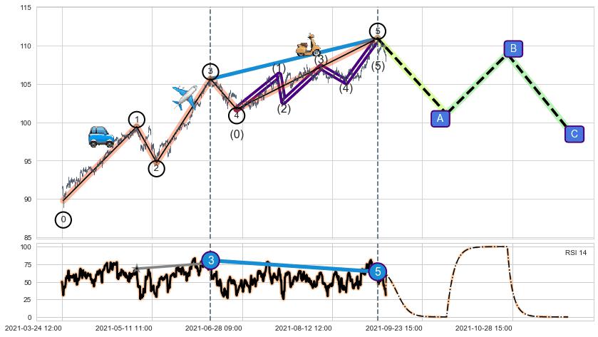 | 7 🅚:塔形顶 | 圆顶 ➕ 🌊:波浪理论猜想上涨浪5已形成,猜想后续形成回调abc下跌(均值回复) ☞ 看空信号 ⇥ 【🅚线】交织【图形】⇥ 综合量化分数: 49 | > |