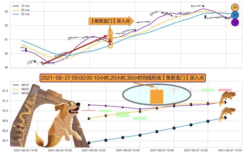 ⚀ 2021-08-27 09:00:00小时显现 10小时-20小时-30小时均线 【鱼跃龙门】买入点 看多信号,后市看涨,买入