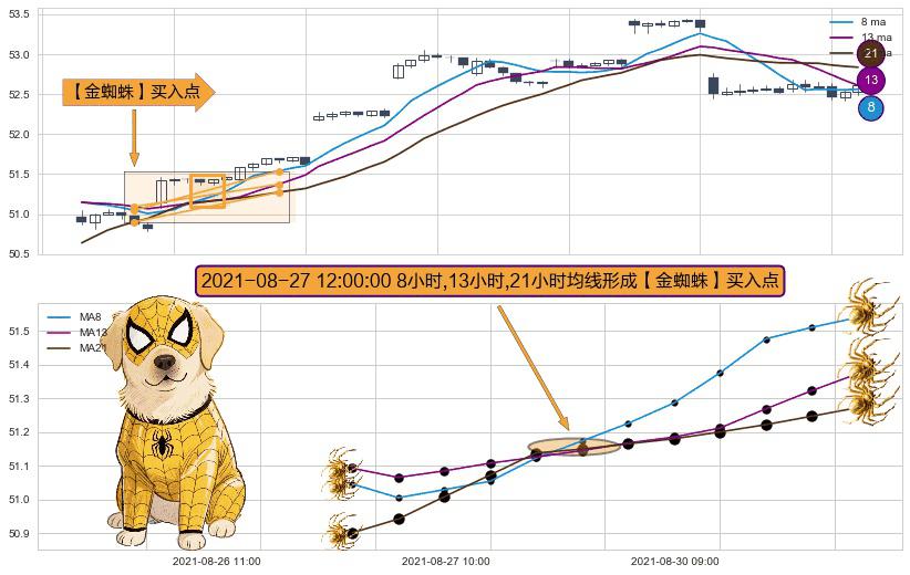 ⚀ 2021-08-27 12:00:00小时显现 8小时-13小时-21小时均线 【金蜘蛛】买入点 看多信号,后市看涨,买入