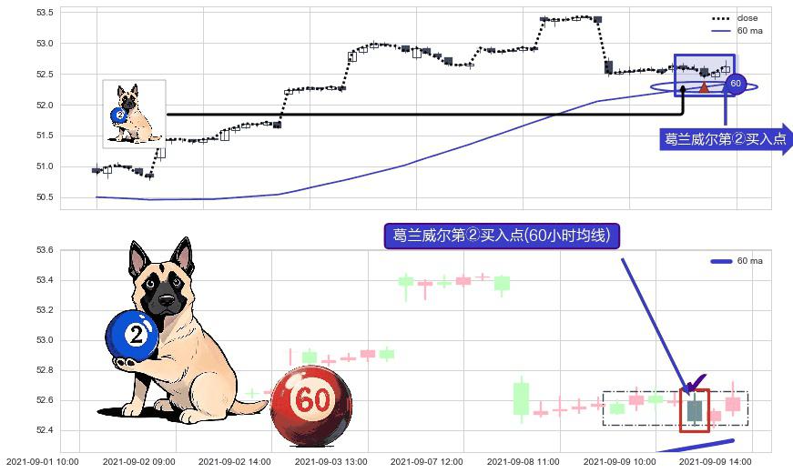 ⚀ 2021-09-09 12:00:00-小时显现 葛兰威尔均线 60小时均线 第②买入点 上升趋势的中继信号,后市看涨,买进信号