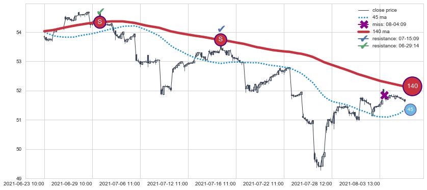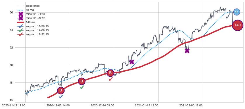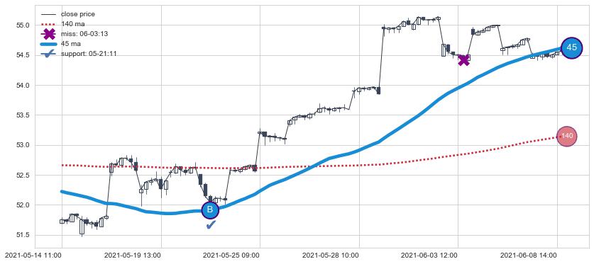 ⚄ 价格在均线获取支撑后再次向上反弹了【极短】距离, 第②买入点 支撑效果【等待验证】