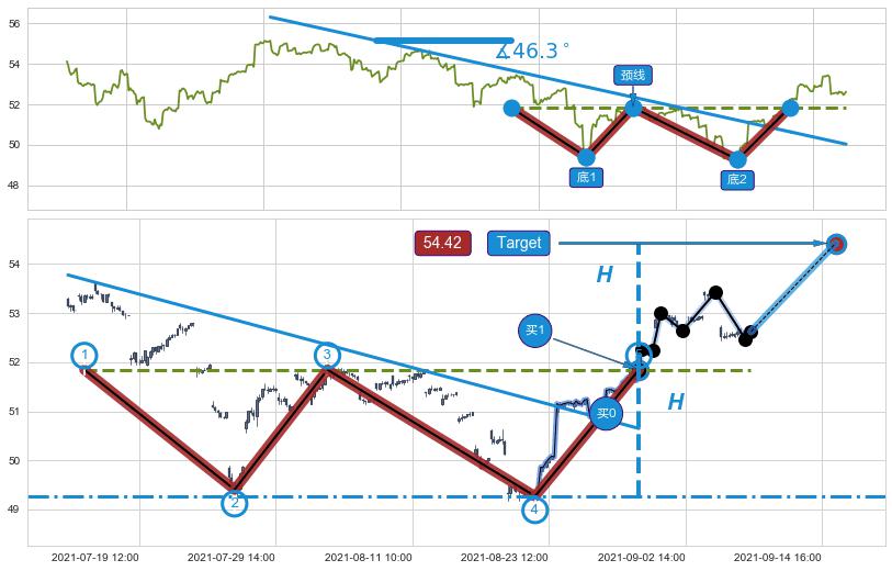➣ 09-01:10到达第❷价格目标位置52.93