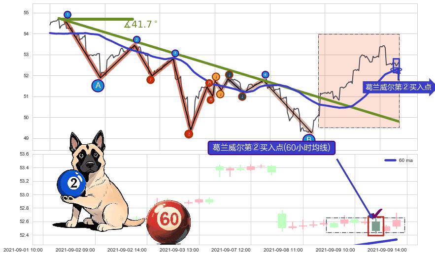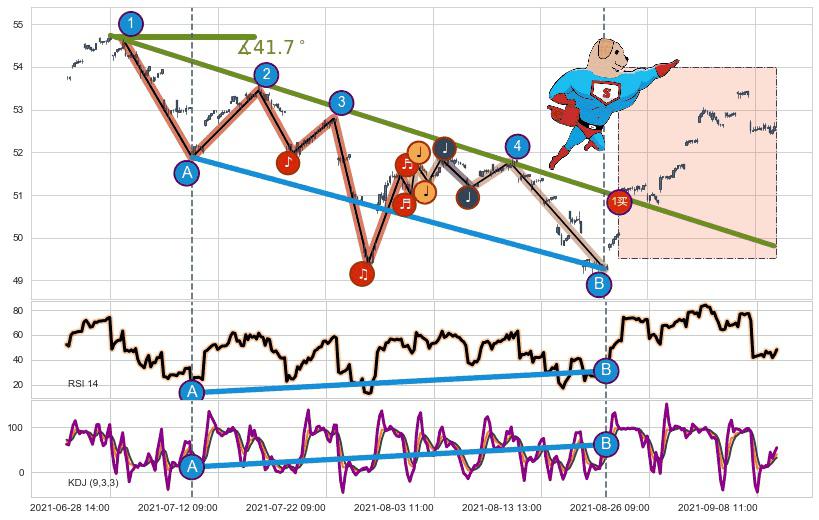➣ 2021-06-28 14:00-2021-08-25 13:00下跌趋势存在反转上涨[机会],其原下跌趋势的阻力位(49.81)已被突破[强支撑信号],原下跌趋势角度: 41.7˚