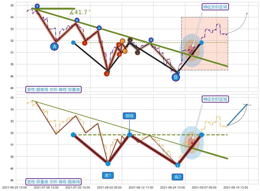 ➢ 最后的下跌趋势2021-06-28 14:00至2021-08-25 13:00:存在突破迹象,后续小反弹或者反转上涨