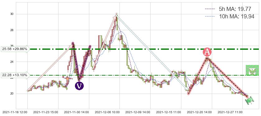 ♘ 阻力价格位25.58,可信任强度75.25%,距离最后交易2021-12-27 15:00形成的收盘价格19.70相差 +29.86%