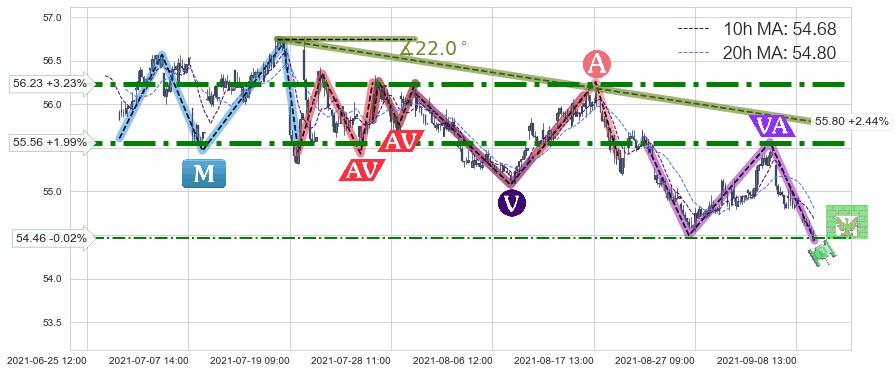 ♞ 10小时均线:54.68,20小时均线:54.80→ 快线<慢线