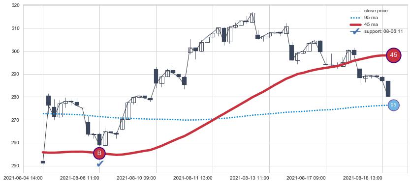 上涨趋势08-04 14:00-08-18 14:00,均线45确认关键支撑1处