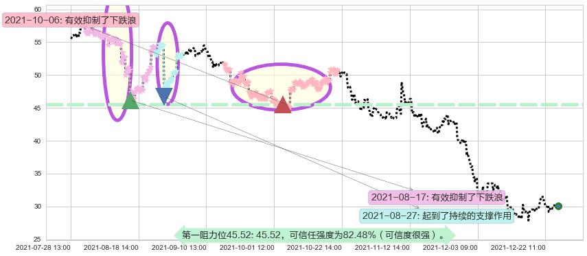♘ 阻力价格位45.52,可信任强度82.48%,距离最后交易2021-12-27 15:00形成的收盘价格30.07相差 +51.37%