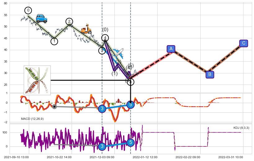 | 10 🅚:旭日东升 ➕ 🌊:波浪理论猜想下跌浪5已形成,猜想后续形成abc反弹上涨(均值回复) ☞ 看多信号 ⇥ 【🅚线】交织【图形】⇥ 综合量化分数: 60 | > |