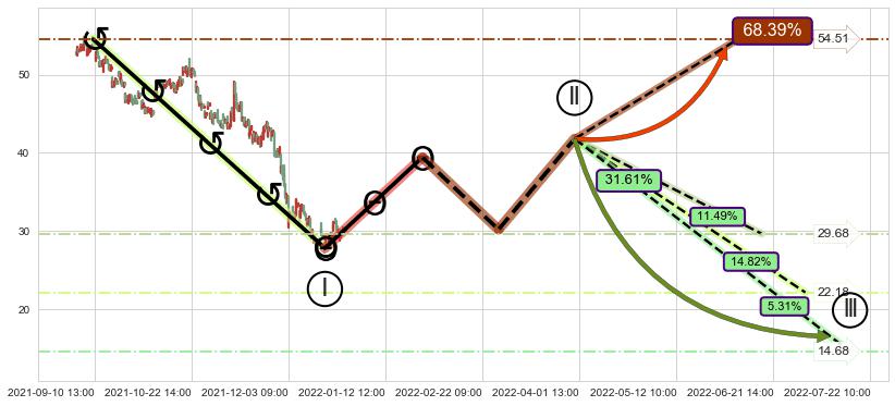 ➢ 循环浪继续向下【最低】位置(07-22:10, 14.68),匹配聚类样本比例16.79%, 可能性概率5.31%