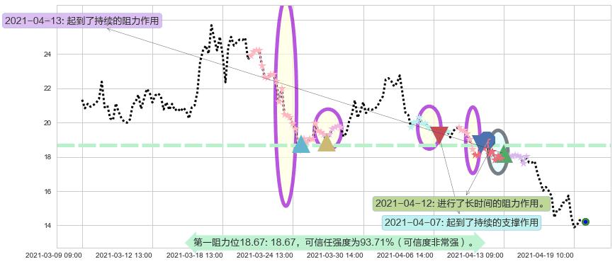 ♘ 阻力价格位18.67,可信任强度93.71%,距离最后交易2021-04-19 14:00形成的收盘价格14.23相差 +31.23%