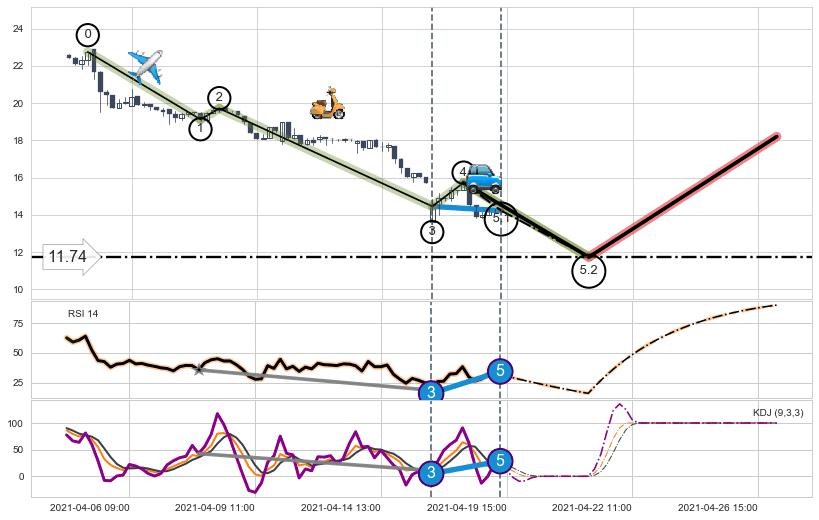 ➢ 5.2: 预测第5浪最终位置(04-21:12, 11.74)
