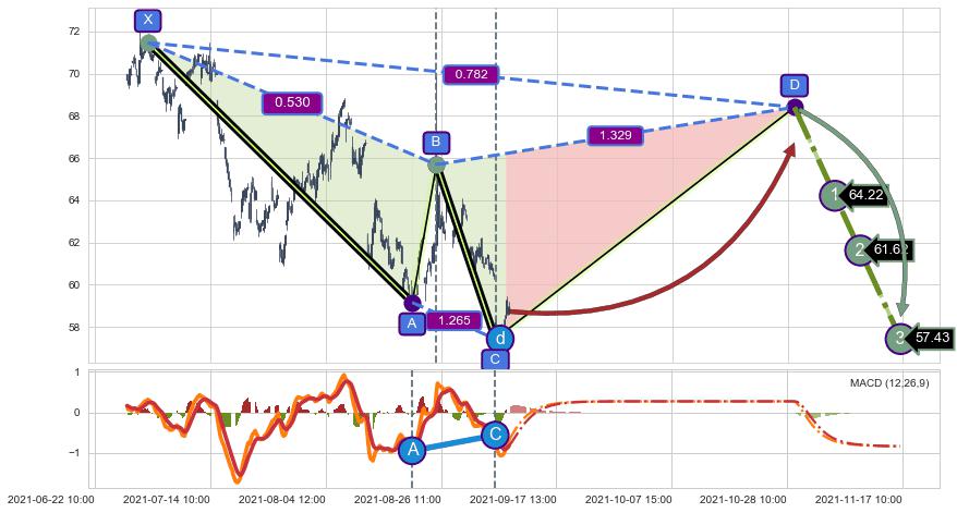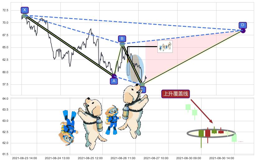➣ D点拟合预测价格68.41,距离最后交易收盘价格58.74相差 +16.46%