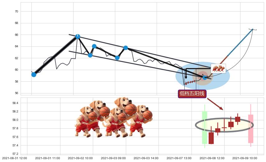 ➢ 【仅预测突破】最后价格:58.74与预测突破价格:60.42→【空间中等】后续最小【整理】第一目标价格→(09-14:14: 66.95 )