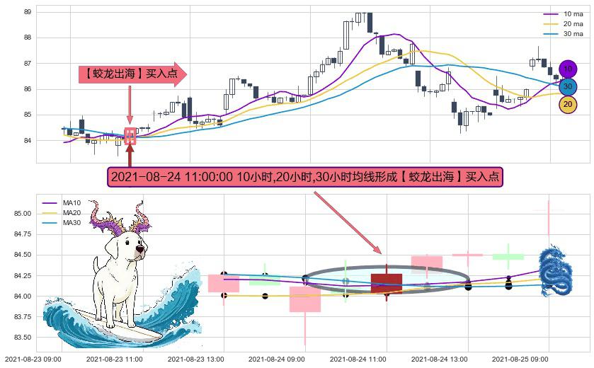 ⚀ 2021-08-24 11:00:00小时显现 10小时-20小时-30小时均线 【蛟龙出海】买入点 看多信号,后市看涨,买入
