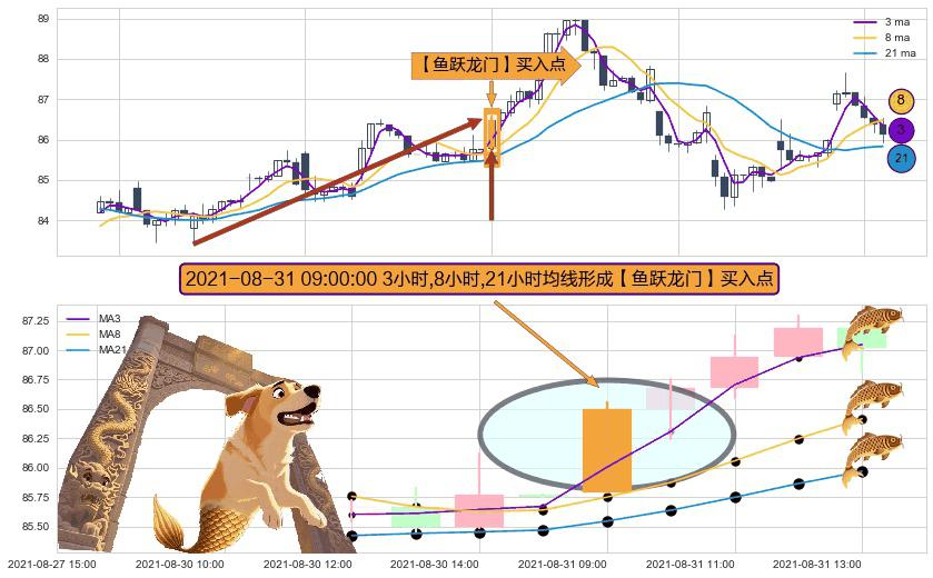 ⚀ 2021-08-31 09:00:00小时显现 3小时-8小时-21小时均线 【鱼跃龙门】买入点 看多信号,后市看涨,买入