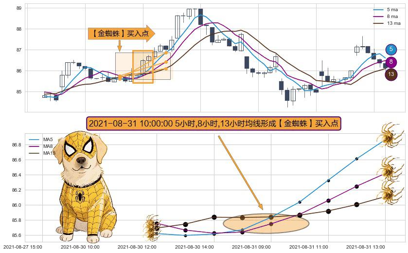 ⚀ 2021-08-31 10:00:00小时显现 5小时-8小时-13小时均线 【金蜘蛛】买入点 看多信号,后市看涨,买入