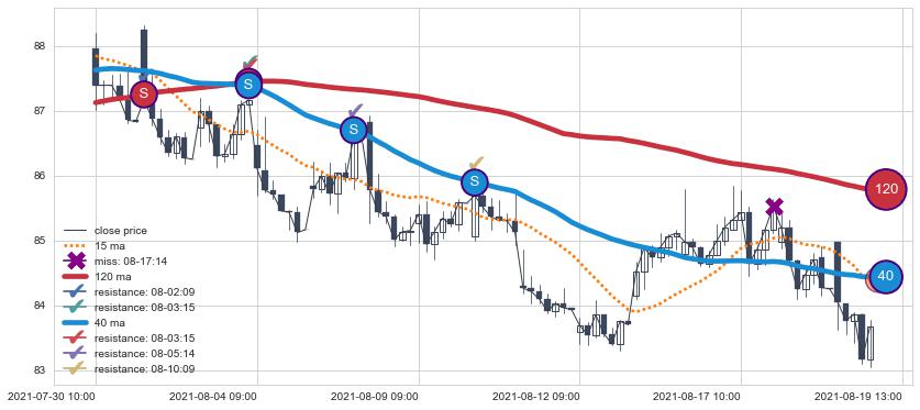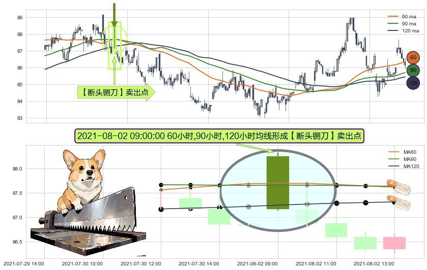 ⚀ 2021-08-02 09:00:00小时显现 60小时-90小时-120小时均线 【断头铡刀】卖出点 看空信号,后市看跌,卖出