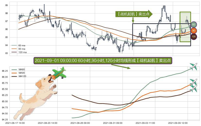 ⚀ 2021-08-24 10:00:00小时-2021-09-09 14:00:00小时显现 60小时-90小时-120小时均线 【战机起航】卖出点 看空信号,后市看跌,卖出
