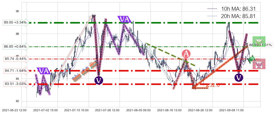 ♞ 10小时均线:86.31,20小时均线:85.81→ 快线>慢线