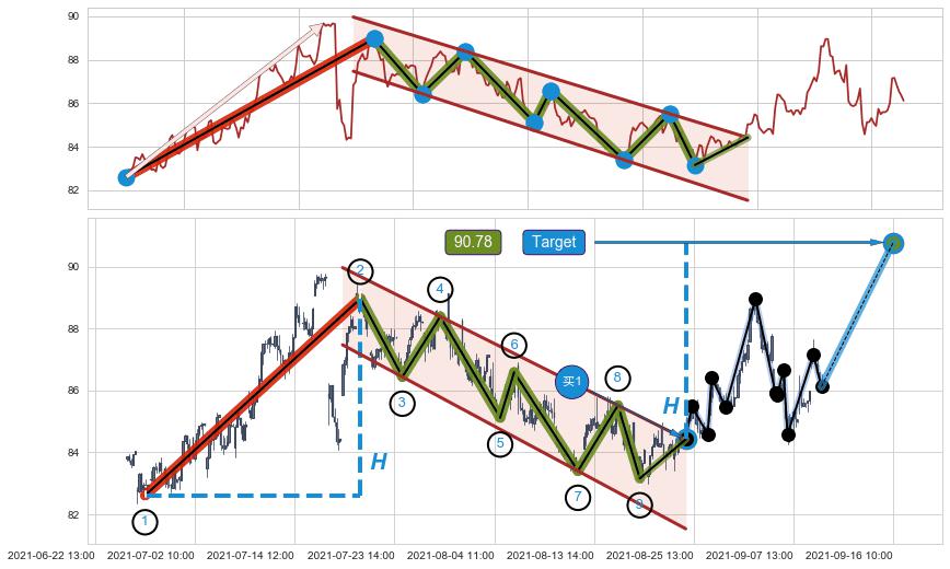➣ 最小中继整理涨幅→𝐇: 6.36 (𝐇旗杆的长度:旗杆起点→顶点)