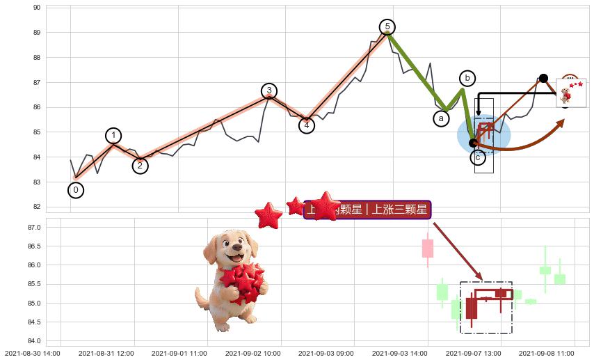 从2021-09-07 10:00至2021-09-09 14:00,共包含18个小时,阶段股价上涨1.83%,阶段股价变动位移路程比: 1 : 3