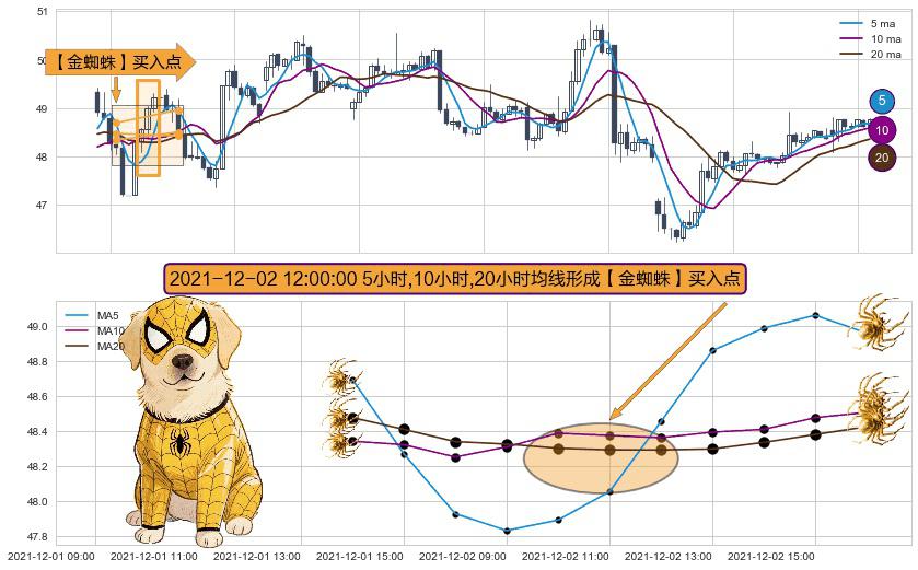 形态多维评估: ⚀ 2021-12-02 12:00:00小时显现 5小时-10小时-20小时均线 【金蜘蛛】买入点 看多信号,后市看涨,买入