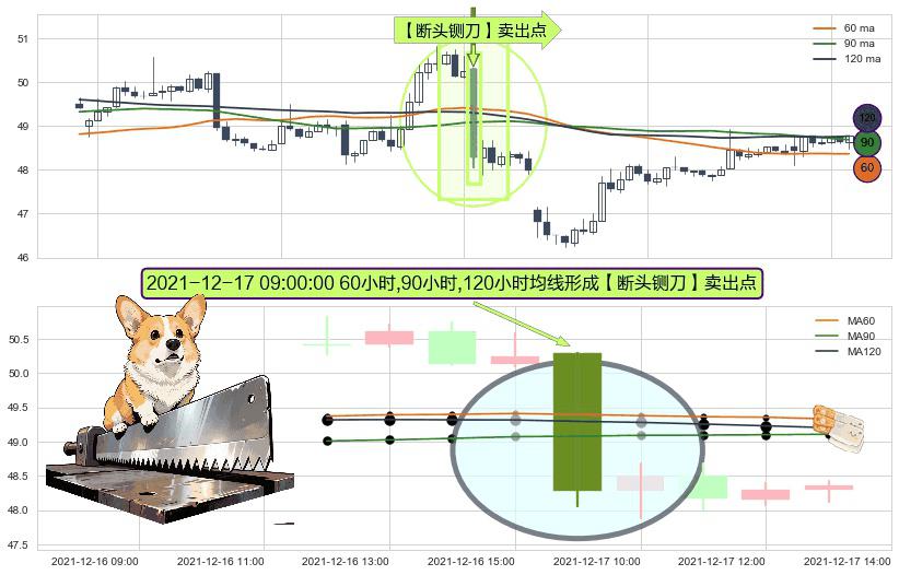 形态多维评估: ⚀ 2021-12-17 09:00:00小时显现 60小时-90小时-120小时均线 【断头铡刀】卖出点 看空信号,后市看跌,卖出