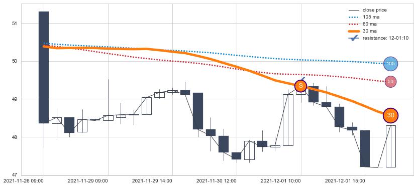 下跌趋势11-26 09:00-12-02 09:00,均线30确认关键阻力1处