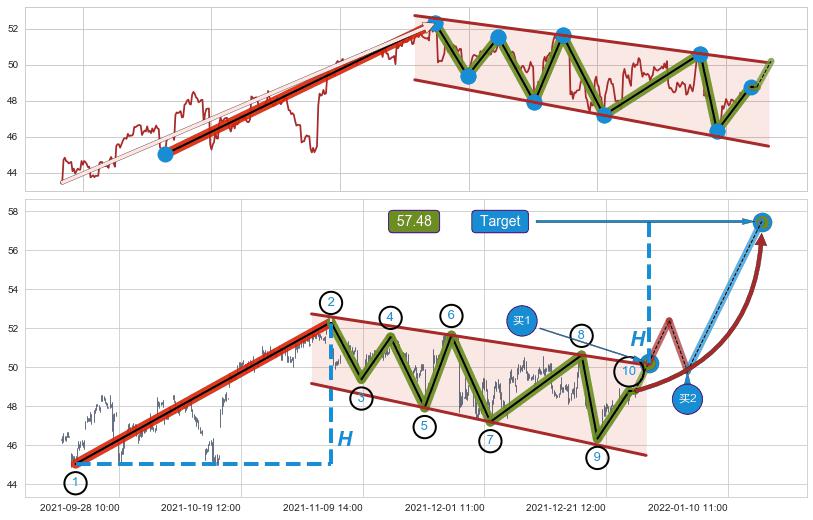 ➣ 最小中继整理涨幅→𝐇: 7.28 (𝐇旗杆的长度:旗杆起点→顶点)