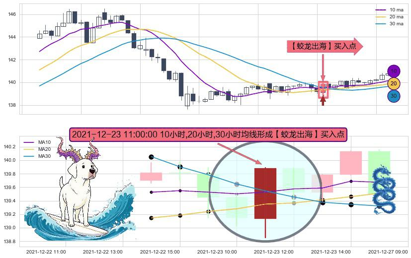 形态多维评估: ⚀ 2021-12-23 11:00:00小时显现 10小时-20小时-30小时均线 【蛟龙出海】买入点 看多信号,后市看涨,买入