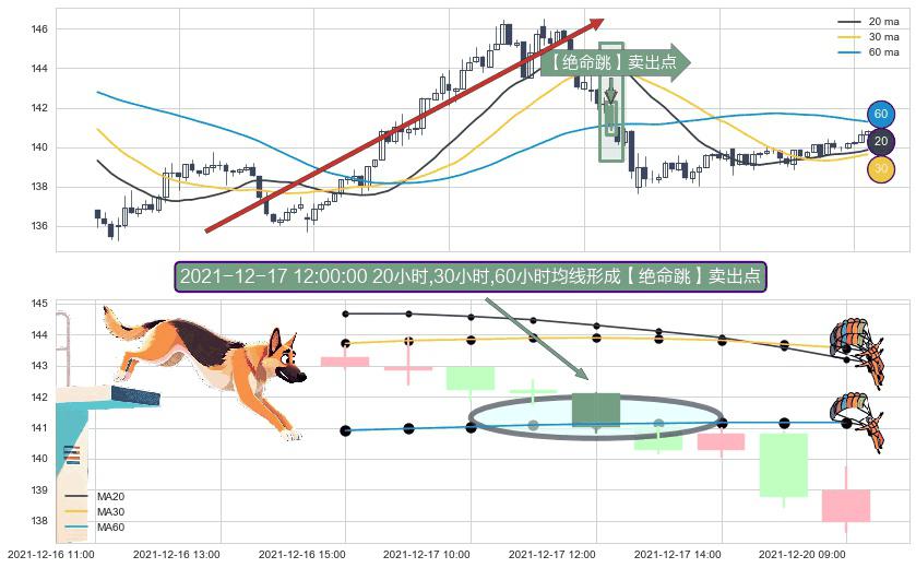 形态多维评估: ⚀ 2021-12-17 12:00:00小时显现 20小时-30小时-60小时均线 【绝命跳】卖出点 看空信号,后市看跌,卖出