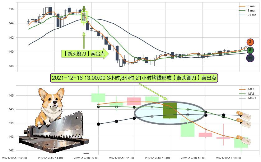 形态多维评估: ⚀ 2021-12-16 13:00:00小时显现 3小时-8小时-21小时均线 【断头铡刀】卖出点 看空信号,后市看跌,卖出