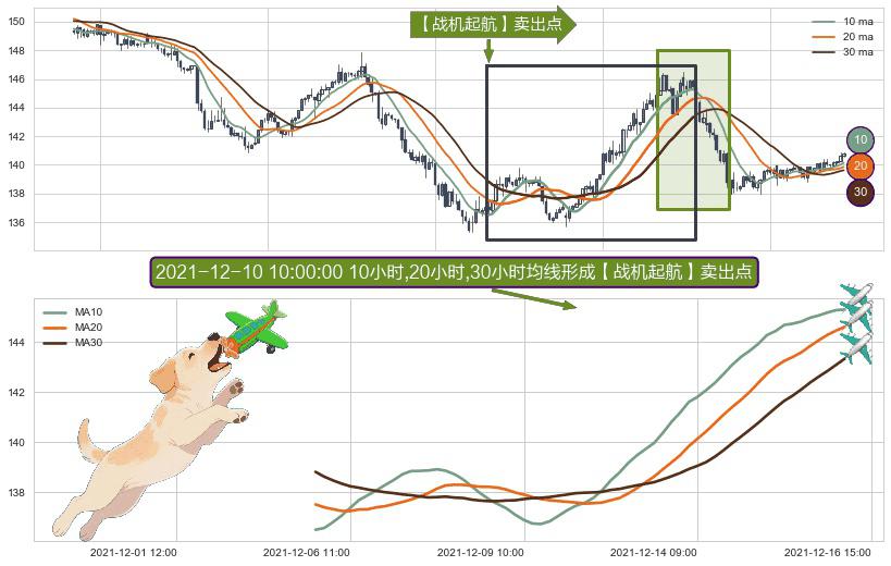 形态多维评估: ⚀ 2021-12-03 14:00:00小时-2021-12-16 12:00:00小时显现 10小时-20小时-30小时均线 【战机起航】卖出点 看空信号,后市看跌,卖出