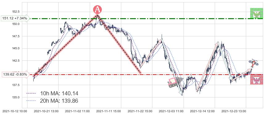 ♘ 支撑价格位139.62,可信任强度45.30%,距离最后交易2021-12-27 15:00形成的收盘价格140.79相差 -0.83%