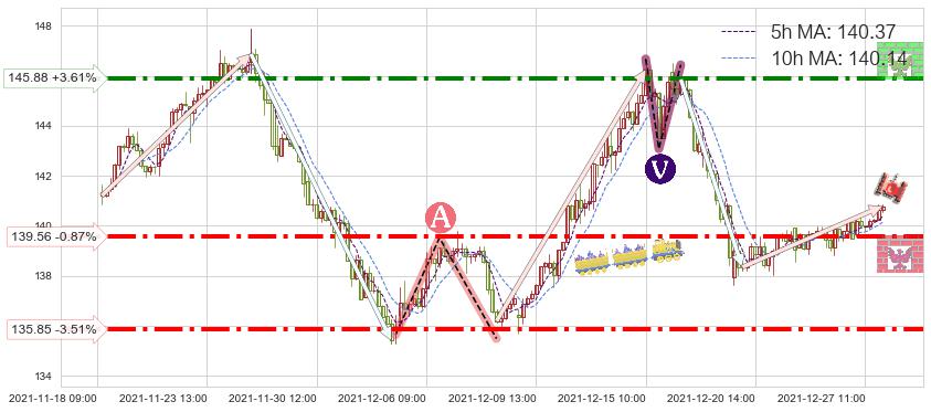 ♞ 5小时均线:140.37,10小时均线:140.14→ 快线>慢线