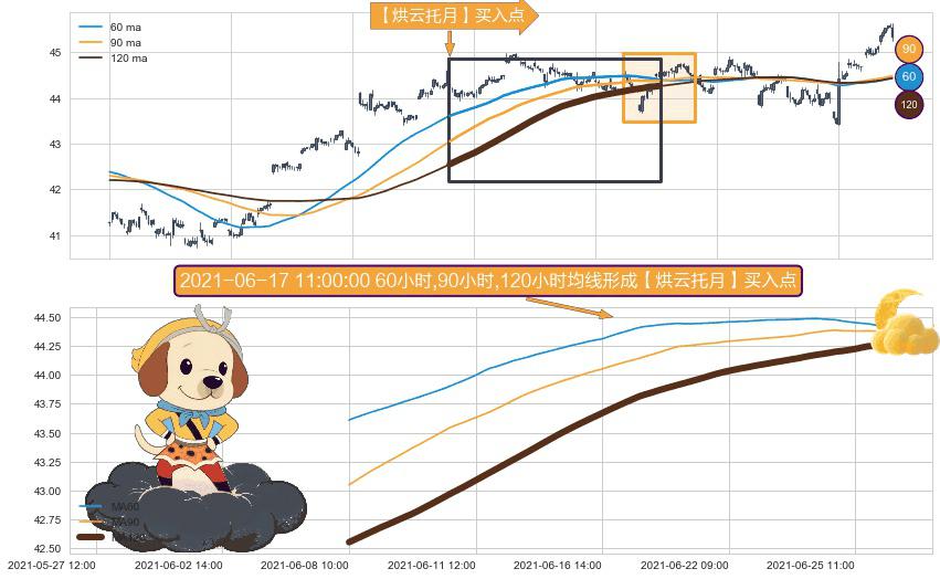 形态多维评估: ⚀ 2021-06-08 10:00:00小时-2021-06-28 10:00:00小时显现 60小时-90小时-120小时均线 【烘云托月】买入点 看多信号,后市看涨,买入