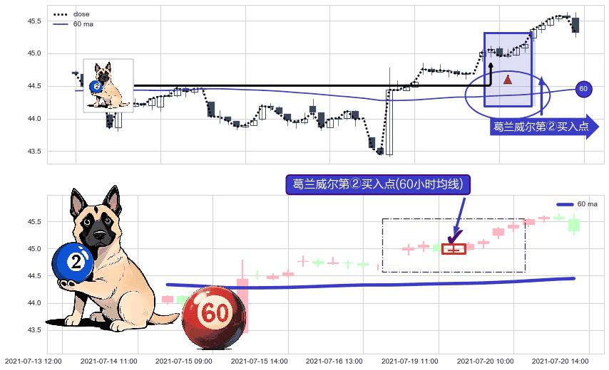 形态多维评估: ⚀ 2021-07-19 12:00:00-小时显现 葛兰威尔均线 60小时均线 第②买入点 上升趋势的中继信号,后市看涨,买进信号