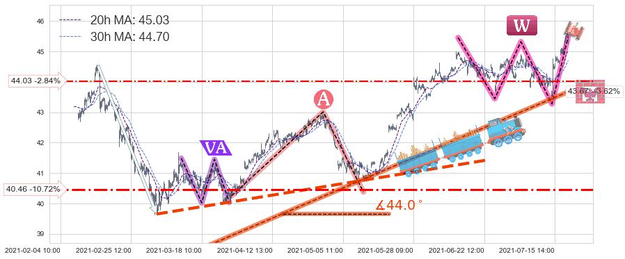 ♘ 支撑价格位44.03,可信任强度54.45%,距离最后交易2021-07-20 14:00形成的收盘价格45.31相差 -2.84%