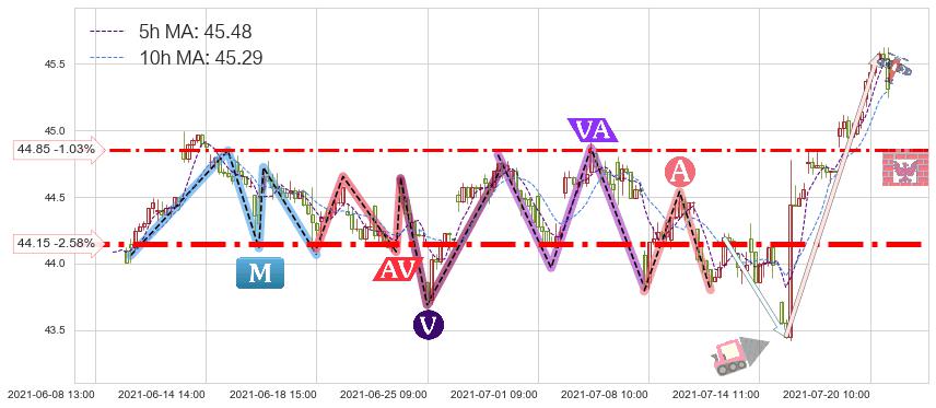 ♞ 5小时均线:45.48,10小时均线:45.29→ 快线>慢线