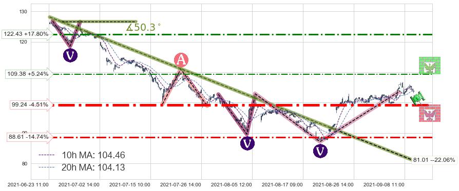 ♘ 阻力价格位109.38,可信任强度49.26%,距离最后交易2021-09-09 14:00形成的收盘价格103.93相差 +5.24%