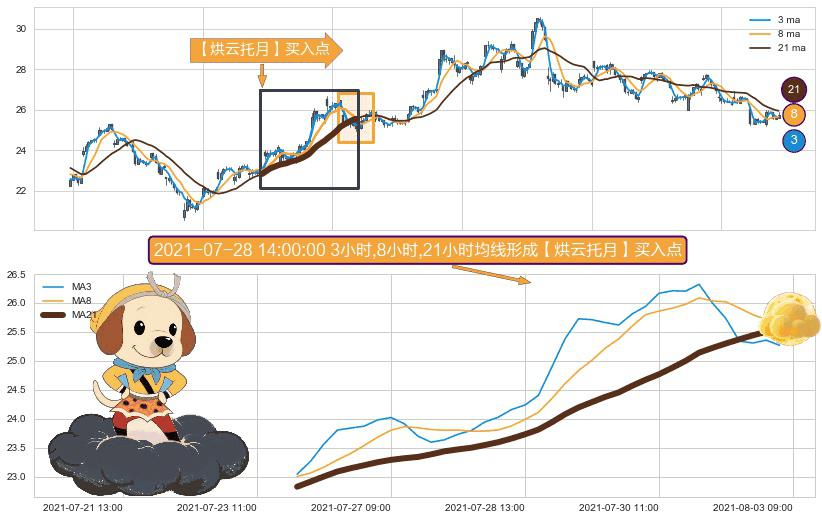 形态多维评估: ⚀ 2021-07-23 14:00:00小时-2021-08-02 14:00:00小时显现 3小时-8小时-21小时均线 【烘云托月】买入点 看多信号,后市看涨,买入